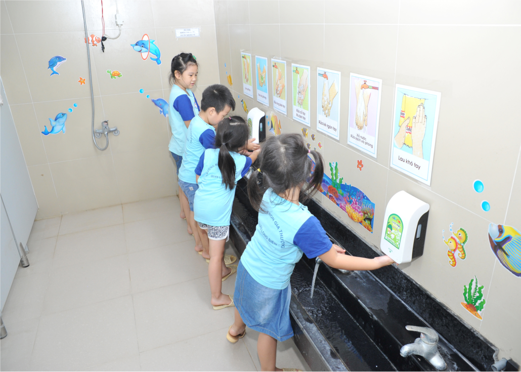 - Học sinh được cô giáo hướng dẫn rửa tay trước và sau khi ăn, sau khi đi vệ sinh.