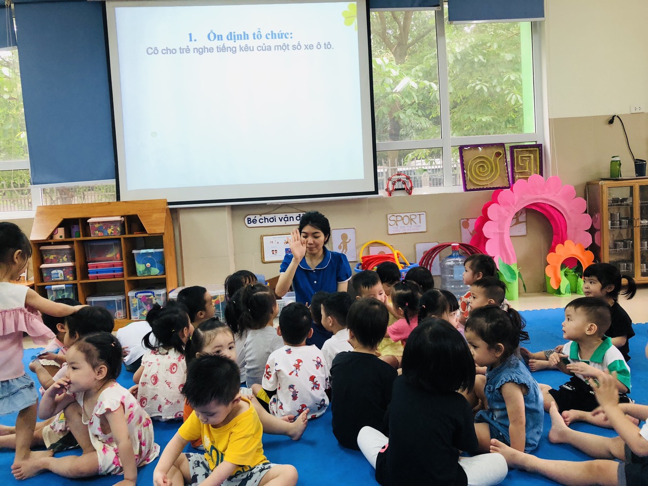 Sau đây là một số hình ảnh giờ học LQVH Thơ " Xe chữa cháy " của các bé lớp nhà trẻ D1.