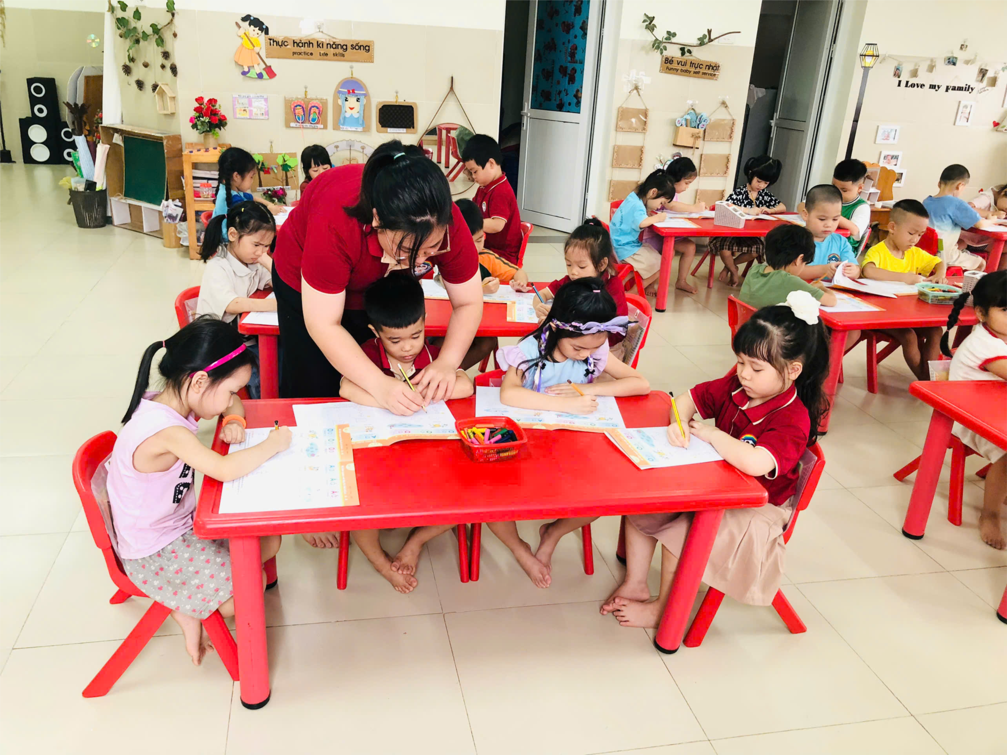 Các bạn bàn 1 rất tập chung tô chữ
