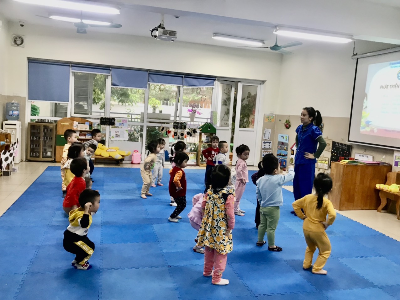 Đầu tiên cô và trò cùng nhau khởi động.