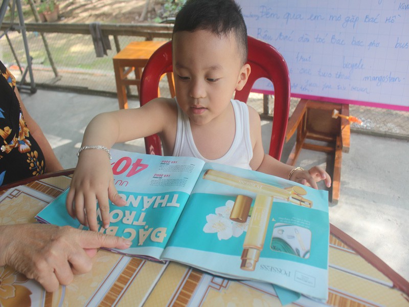 Dù mới 2,5 tuổi nhưng bé Tuấn Khang đọc rành mạch chữ. Ảnh: ĐÔNG HÀ