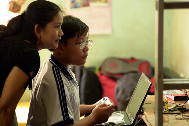 Hàng ngày, sau khi học xong chương trình lớp 7 ở trường THCS Nguyễn Gia Thiều (Q.Tân Bình), Hảo lại cắp sách đi học lập trình cùng các sinh viên. Thậm chí, cậu bé 13 tuổi này còn được bầu làm nhóm trưởng.