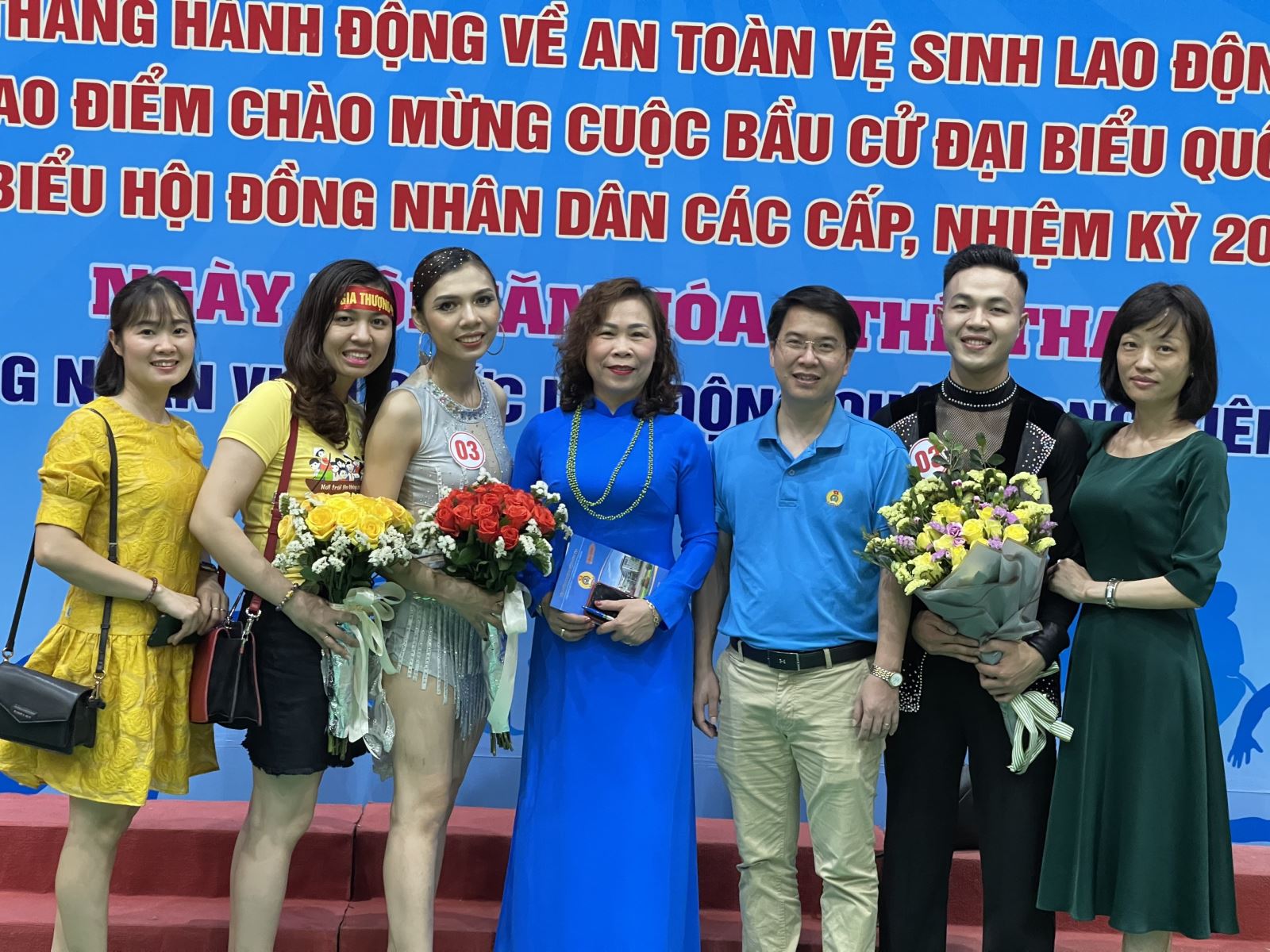 - Hai vận động viên khiêu vũ là cô giáo Nguyễn Thị Kim Thanh và nhân viên Dương Minh Tiến đã xuất sắc hoàn thành các nội dung thi.