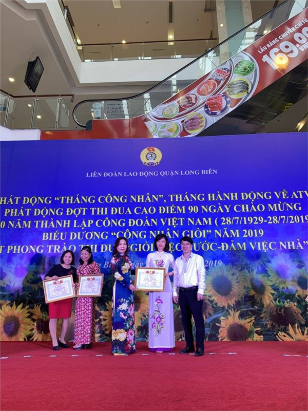 Các đồng chí được Ban thường vụ LĐLĐ Quận Long Biên tặng giấy khen "Giỏi việc nước-Đảm việc nhà"