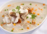 Xương sụn lợn 100g, gạo 50g, bột ngọt, bột gia vị vừa đủ. Xương sụn lợn rửa sạch, xay nhỏ như bột, ướp bột gia vị xào chín. Gạo xay thành bột. Xương sụn lợn cho vào nồi thêm 150ml nước đun trên lửa nhỏ, khi sụn nhừ cho bột gạo vào quấy đều, đun tiếp tới khi cháo chín cho bột ngọt. Trẻ ăn ngày 2 lần lúc đói. Cần ăn liền 15 – 20 ngày.