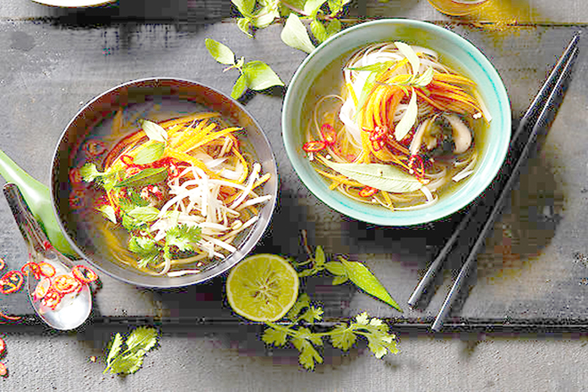 Phở chay nấu nấm đô !important;ng cô vừa quen vừa lạ tăng đề kháng tốt nên có trong