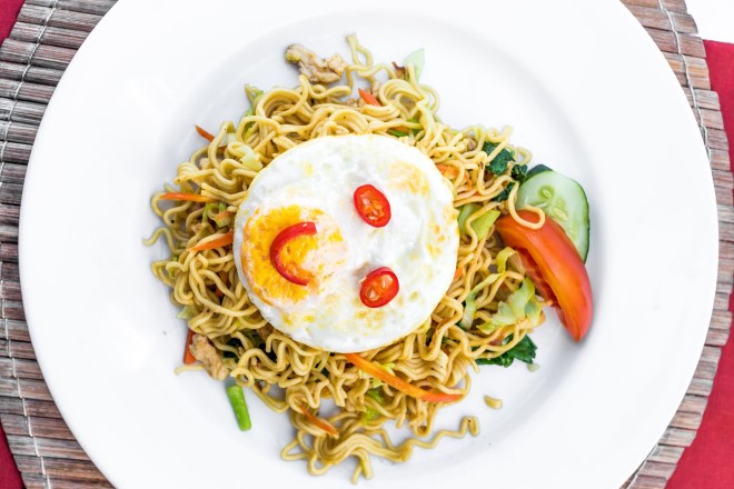 Trứng ốp la là !important; món ăn quốc dân của mọi nhà. Kết hợp trứng ốp la cùng mì xào sẽ giúp món ăn có nhiều dinh dưỡng hơn. Tùy theo sở thích của bạn mà có thể chiên trứng từ ốp la tới nửa ốp la hoặc chín.
