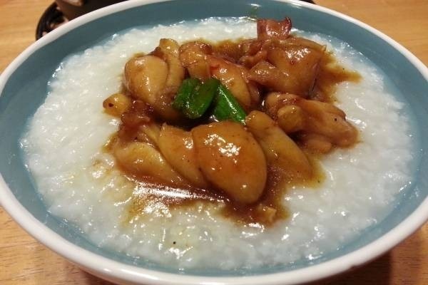 - Gạo cho vào nấu thành cháo trắng đặc. Khi thấy cháo chín mịn, cho rau vào nấu nhừ. Sau khi rau chín, cho thịt ếch vào, nêm gia vị, tắt bếp.