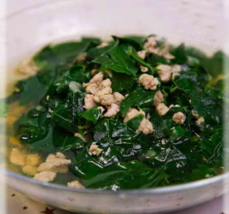 Nguyên liệu: 50g rau ngót, 30g thịt heo