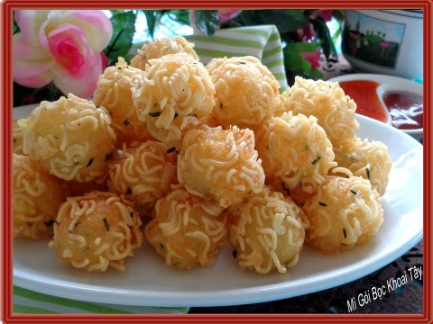 Mì Gói Bọc Khoai Tây Món Ngon Cho Bé. Hôm nay bé bịnh bé chê cháo tôm bé chẳng còn mê nữa. Nghĩ mãi rồi cũng tìm ra Khoai tây mì gói chắc là bé ăn thế là mình lại lăn săn hấp khoai trộn bột sẵn sàng chiên thôi. Chiên xong chưa kịp rửa nồi vội mang cho bé thử mồi xem sao Không ngờ bé thích ăn ngay vừa ăn vừa nói món này con mê.