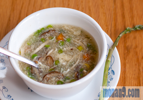 - Khi ăn, múc ra bát, rắc hành, mùi lên.