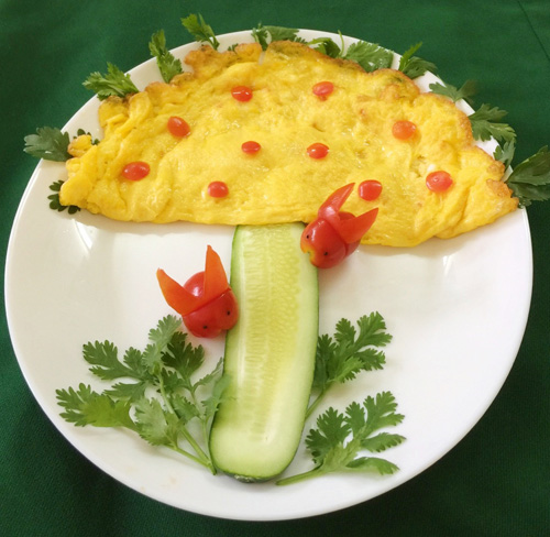 Như vậy, chỉ với một chút biến tấu và trang trí đơn giản bạn đã có được món trứng chiên phomai béo ngậy với tạo hình cây nấm cùng những chú thỏ xinh xắn cho các bé yêu của mình rồi.