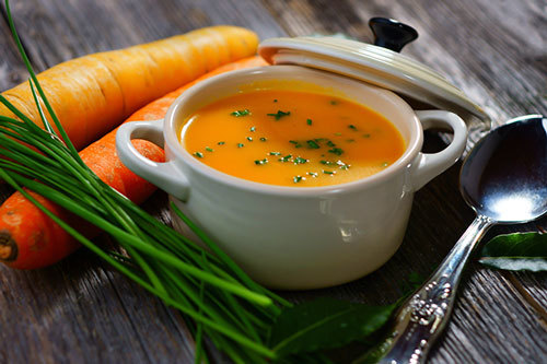 Mang màu vàng cam đặc sắc, cà rốt là nguồn beta carotene dồi dào. Beta carotene hỗ trợ tiết dịch nhầy trong cơ thể, yếu tố cần thiết cho cơ quan hô hấp và tiêu hóa hoạt động tốt, ngăn cản vi khuẩn xâm nhập vào các mạch máu. Nếu bé bị ốm, cho bé ăn súp cà rốt hầm sẽ giúp bé khỏe lại rất nhanh.