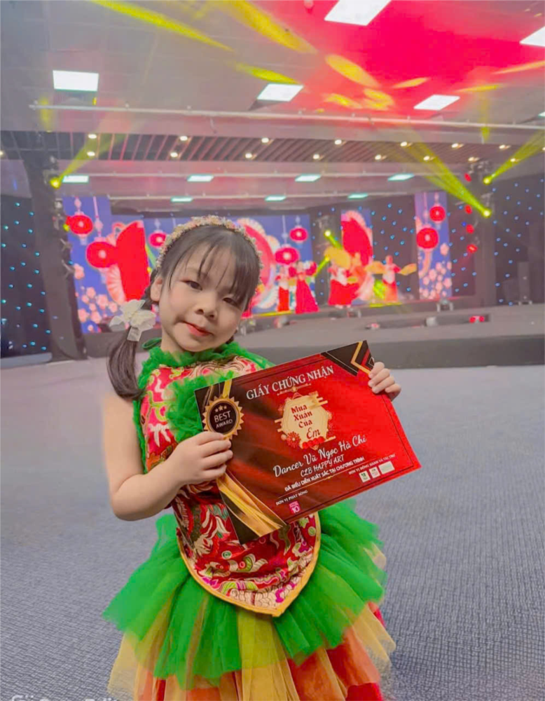 Bé Hà Chi được nhận giấy chứng nhận biểu diễn xuất sắc Mùa xuân của em 2025 tại sân khấu VTC