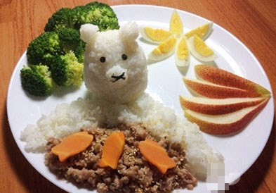 Nếu có nấu canh mẹ có thể múc cho bé một bát canh nhỏ đặt bên cạnh thế là mẹ đã hoàn thành cho bé một đĩa ăn có chú gấu đi bắt cá rồi đấy!