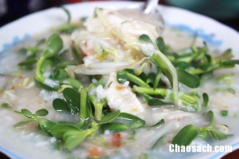 - Muỗng cháo hút hồn người ăn với vị ngọt của cá, hương thơm nhẹ của nấm rơm cùng vị đắng nhẹ của rau đắng.