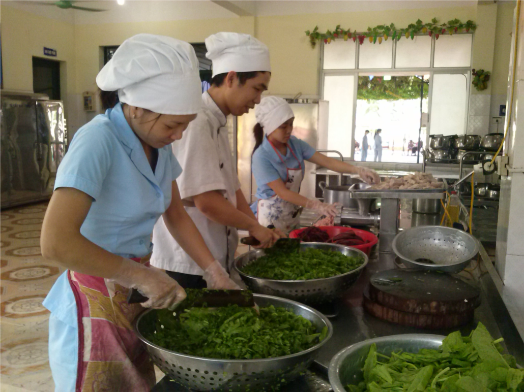 – Bếp ăn được thiết kế theo đúng quy trình bếp ăn một chiều ( đi từ thức ăn sống đến , sơ chế thức ăn rồi khu vực chia thức ăn chín ) Toàn bộ đò dùng cho nhà bếp đúng quy cách đảm bảo hợp vệ sinh.