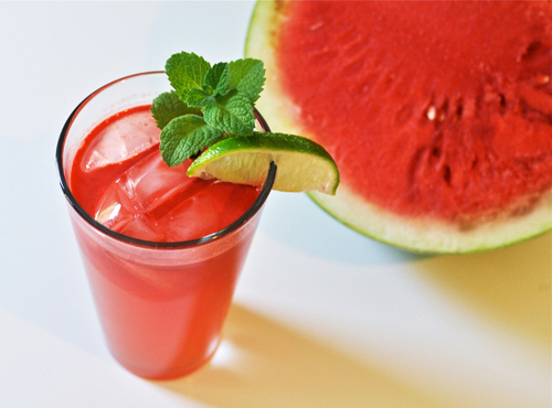 Cách làm: Dưa hấu gọt hết cùi trắng, bỏ hạt và thái nhỏ. Xay nhuyễn dưa rồi dùng rây lọc lấy phần nước, bỏ bã. Rửa máy xay rồi cho nước dưa vừa lọc vào cùng chút sữa, mật ong và lá bạc hà xay tiếp. Ly sinh tố dưa hấu hoàn thành có thêm mùi thơm đặc trưng của lá bạc hà và mật ong rất hấp dẫn.
