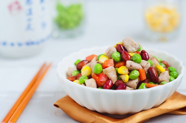 Ăn kèm cơm nóng, đậu hấp chín mềm trộn với thịt và trứng rất thơm.