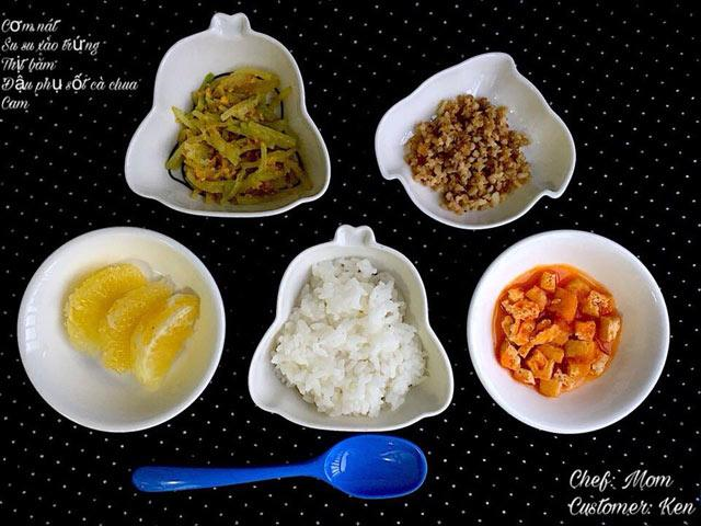 Một bữa ăn của bé, các mẹ thường chú trọng làm 1 đến 2 món ăn mặn và 1 món rau/canh kèm hoa quả tráng miệng hoặc sữa chua. Thực đơn được thay đổi mỗi ngày để đảm bảo bé không chán.