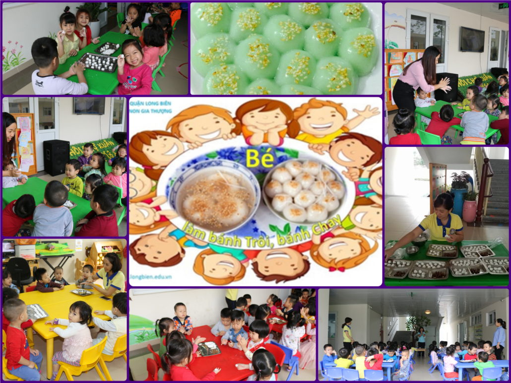 Hoạt động được tổ chức ngay tại tiền sảnh các lớp học. Tại đây các bé được trải nghiệm thực tế, tự tay nặn bột thành những viên bánh tròn xinh theo sự hướng dẫn tỉ mỉ ân cần của cô giáo. Các bé rất hào hứng và thích thú với việc nặn bánh, từng viên bánh tròn xinh dần dần được tạo ra trên đôi bàn tay bé nhỏ khéo léo.
