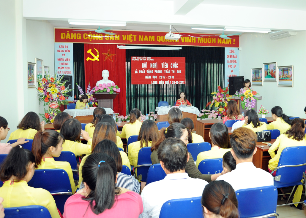 Hội nghị Cán bộ công chức, viên chức, người lao động năm học 2017 – 2018 đã khép lại và đã mở ra trang sách của năm học mới. Hơn bao giờ hết, mỗi cán bộ giáo viên, công nhân viên trường mầm non Gia Thượng càng hiểu rõ trách nhiệm nặng nề nhưng vô cùng vẻ vang của mình trong sự nghiệp “trồng người”. Chúc cho tập thể CBGVNV nhà trường luôn đoàn kết, sáng tạo để góp phần nâng cao hơn nữa chất lượng chăm sóc, giáo dục để ngày càng được phụ huynh và học sinh tin tưởng.