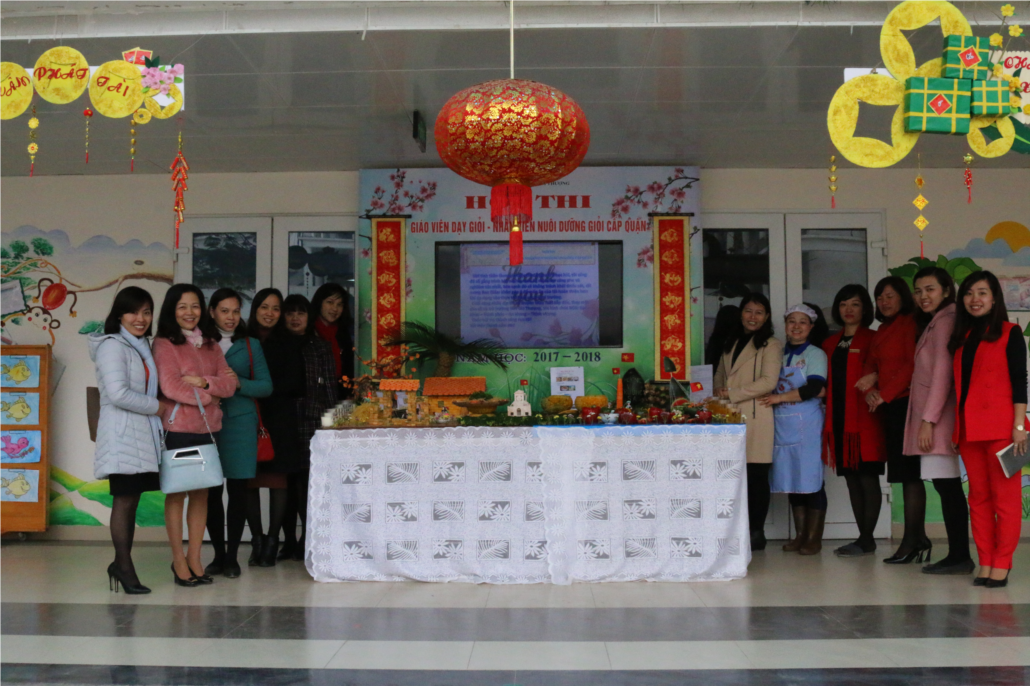 Tại hội thi giáo viên – Nhân viên giỏi cấp quận năm học 2017-2018, thí sinh lần lượt trải qua 2 vòng thi: Thi lý thuyết và thi thực hành. Bài thi lý thuyết là làm một bài kiểm tra năng lực hiểu biết về chuyên môn, nghiệp vụ dành cho tất cả các đối tượng với thời gian làm bài 90 phút. Ở vòng thi thực hành, thí sinh thực hiện 2 hoạt động:1 hoạt động học(Bắt thăm đề tài trước 1 tuần theo quy định) và 1 hoạt động tự chọn theo chương trình tại thời điểm diễn ra hội thi. Tham gia hội thi giáo viên dạy giỏi cấp Quận năm học 2017-2018 nhà trường có 3 giáo viên tham gia dự thi: Cô giáo Nguyễn Thị Kim Thanh, cô giáo Nguyễn Thị Thảo Quyên, cô giáo Nguyễn Thị Hồng Hoa Và nhân viên nuôi dưỡng Lê Thanh Nhàn.