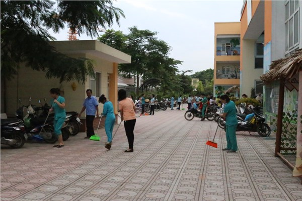 Tổng vệ sinh xung quanh bên ngoài trường