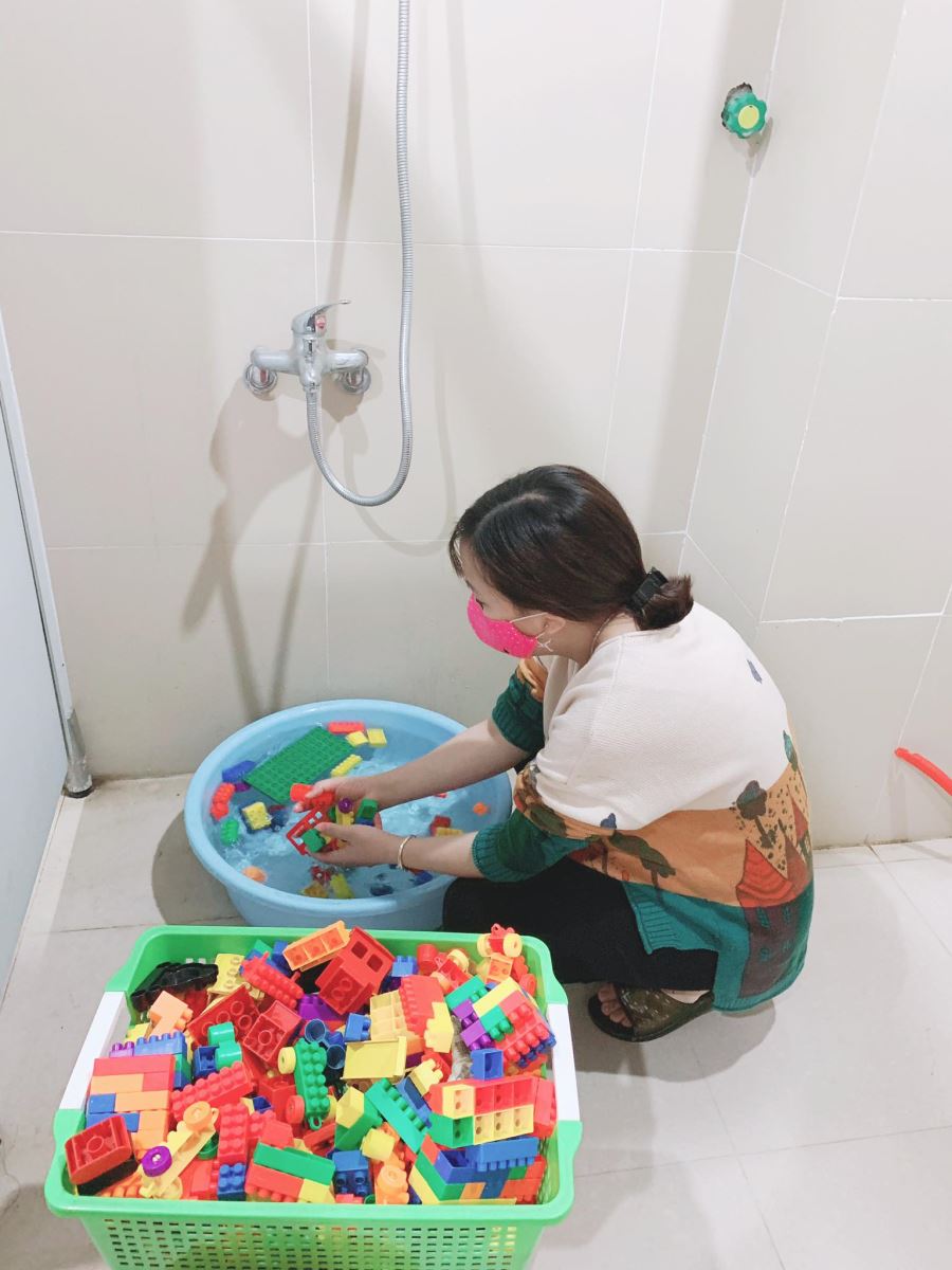 Giáo viên cọ rửa đồ chơi
