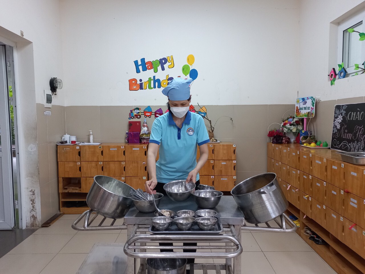 Chăm só !important;c nuôi dưỡng trẻ là một nhiệm vụ quan trọng trong trường mầm non. Mục tiêu chăm sóc, nuôi dưỡng, giáo dục trẻ mầm non là giúp trẻ phát triển toàn diện về thể chất, tinh cảm, trí tuệ, thẩm mỹ, hình thành những yếu tố đầu tiên của nhân cách. Để trẻ phát triển cân đối, khỏe mạnh ngay từ đầu chúng ta cần phải có một chế độ dinh dưỡng ăn uống hợp lý. Thời gian hoạt động ăn, ngủ của trẻ ở trường mầm non chiếm tỷ lệ khá lớn so với thời gian trong ngày. Vì vậy để thực hiện tốt việc chăm sóc sức khỏe và giảm bớt tỷ lệ trẻ suy dinh dưỡng cho trẻ ở trường mầm non. Tập thể giáo viên phối hợp với phụ huynh và nhà trường, nhằm nâng cao chất lượng bữa ăn, quyết tâm thực hiện tốt công tác chăm sóc sức khỏe học sinh. Giờ ăn của trẻ cô cung cấp cho trẻ kiến thức về các món ăn, về giá trị dinh dưỡng của thức ăn, về cách cầm bát, thìa, động viên trẻ ăn ngoan, ăn hết xuất và không để cơm rơi ra ngoài. Trẻ biết đoàn kết và giữ gìn vệ sinh trong khi ăn. Sau đây là một số hình ảnh hoạt động trong giờ ăn trưa và ngủ trưa của các bạn lớp NT D2.