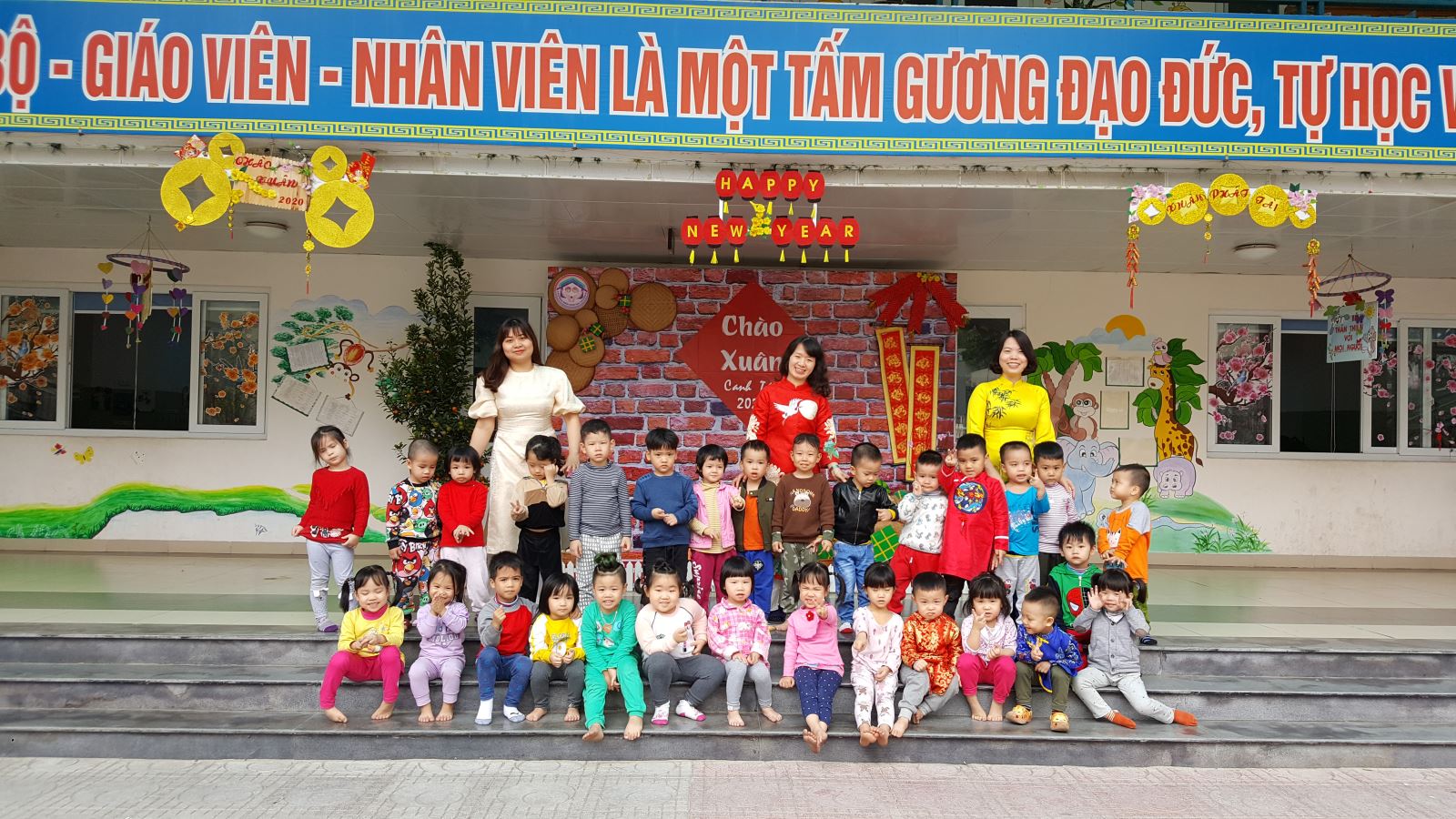 Cá !important;c bé vui vẻ chụp ảnh kỉ niệm cùng các cô sau khi tham dự chương trình " Xem qui trình gói bánh Chưng Tết năm 2020"