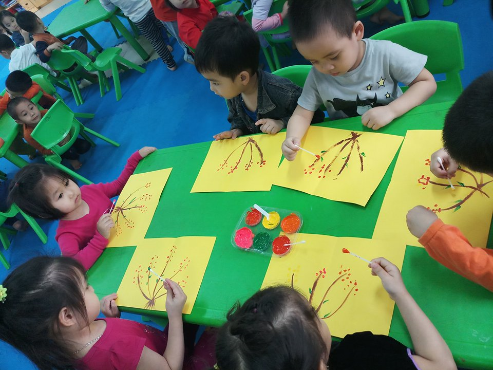 Ngày hôm nay, các bạn lớp MGB C2 được tham gia trải nghiệm với màu nước. Từ những màu nước màu sắc kết hợn với bông tăm trẻ đã tạo ra được những bó hoa tươi thắm với nhiều sắc màu sặc sỡ và các loài hoa khác nhau. Có bạn thích những bông hoa tròn, có bạn lại thích những bông hoa dài. Từ đó trẻ có thể sáng tạo ra những bó hoa riêng của mình. Cùng chúng tớ chấm màu để tạo thành những bó hoa sắc màu nhé.