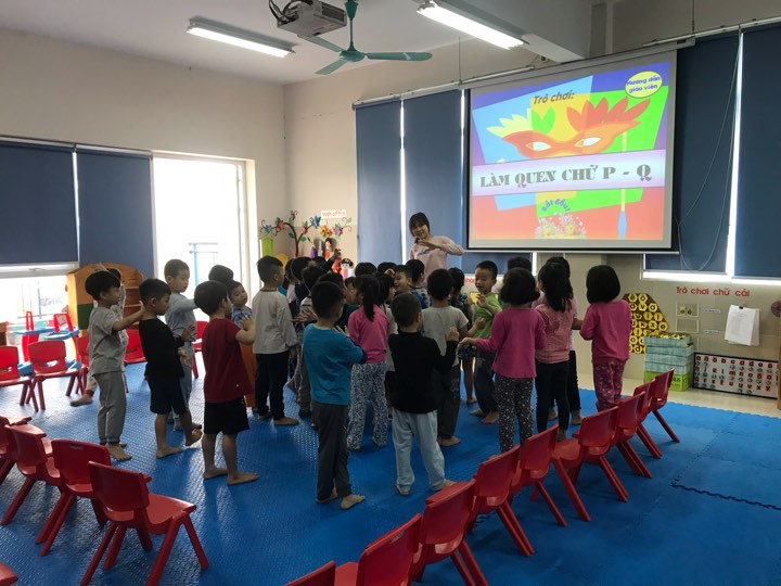 Đến với các trò chơi với chữ cái p, q, các bé chú ý lắng nghe cách chơi, được tham gia các thao tác hoàn thiện trò chơi, bạn nhỏ nào cũng tích cực tham gia các trò chơi mà cô tạo ra.