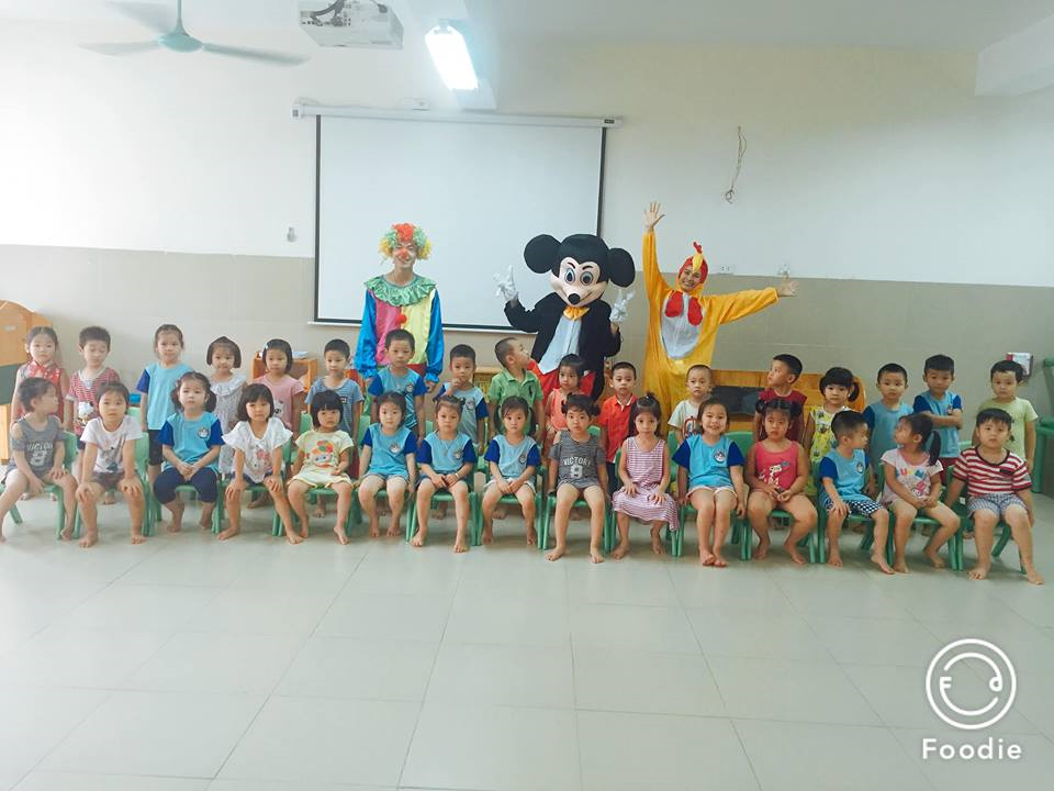 Các bạn nhỏ thích thú được nhảy múa cùng chú hề, chú chuột Mickey và chú gà trống!