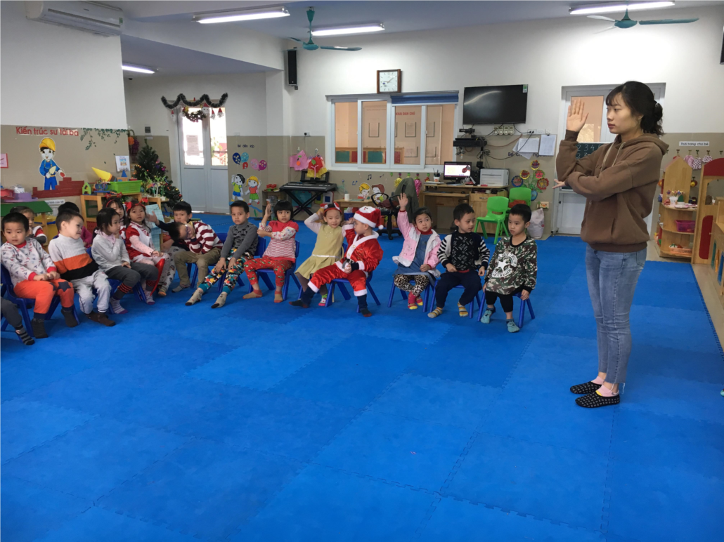 Cô giáo hướng dẫn các bé tham gia vào giờ học
