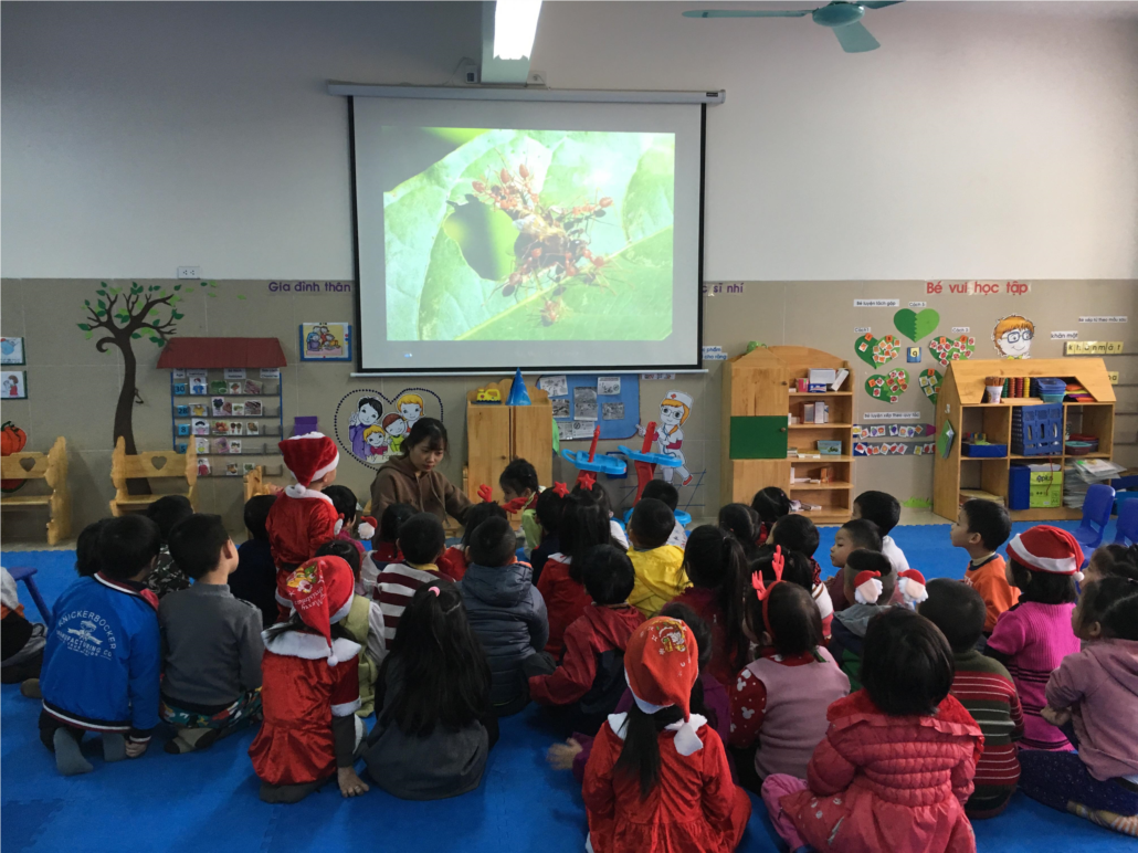 Ngày 25/12/2017, Các bé A2 tham gia vào hoạt động làm quen văn học đọc thơ "Đàn kiến nó đi".