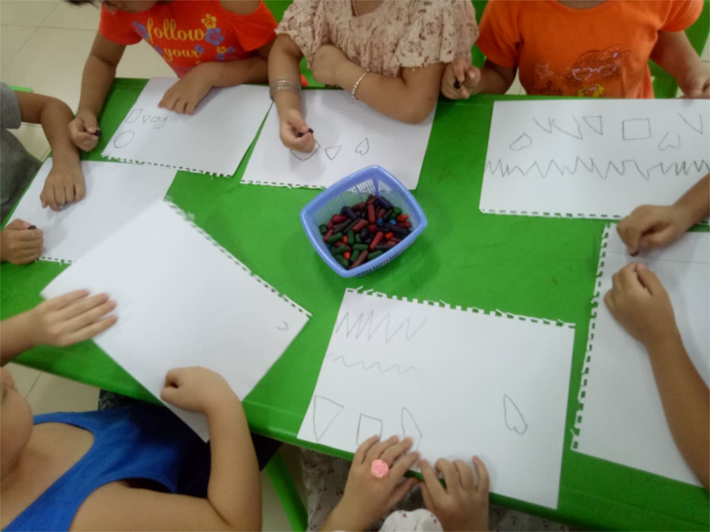 Trẻ tập vẽ và xé theo nét trẻ vẽ
