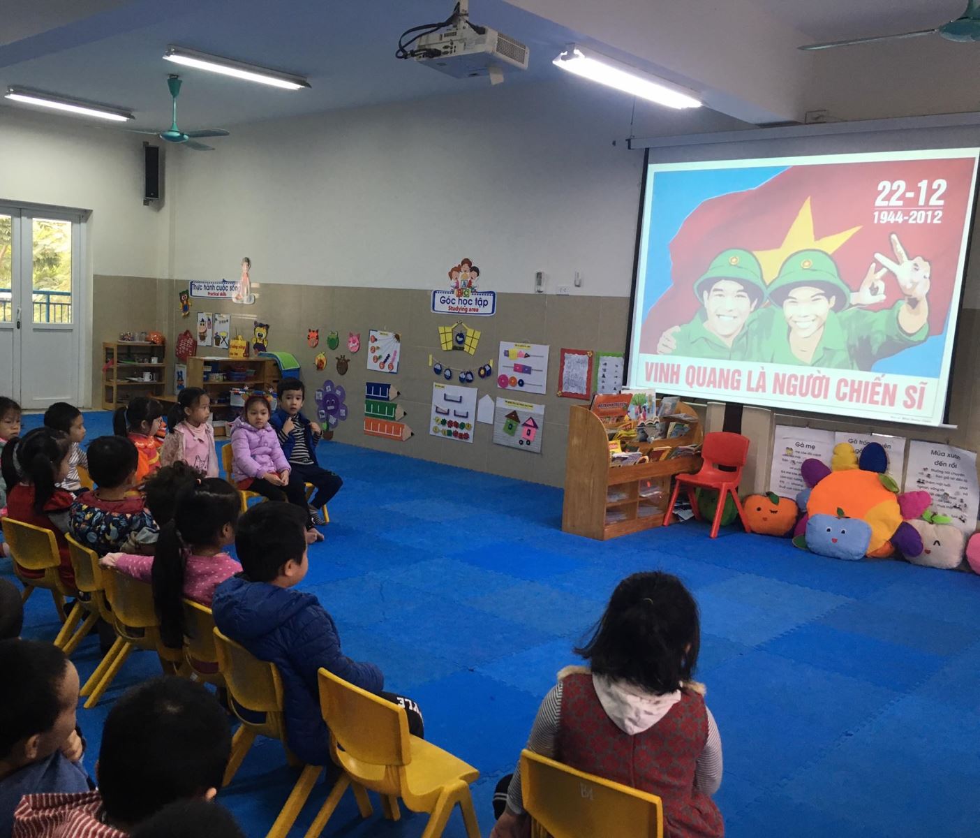 Hoà chung không khí vui tươi. rộn ràng chào mừng ngày kỷ niệm thành lập Quân đội nhân dân Việt Nam, ngày của các cô, các chú làm trong quân đội không kể màu áo, nhiệm vụ được giao. Ngày 18/12/2020 các bé lớp B1 trường mầm non Gia Thượng được các cô tổ chức cho khám phá tìm hiểu về công việc, trang phục, nơi công tác... của các chú bộ đội như một cách tỏ lòng thành kính, biết ơn với những người lính, những người được gọi là bộ đội cụ Hồ, những con người đã tiên phong đi đầu trong công cuộc bảo vệ và xây dựng đất nước dù trong thời chiến hay thời bình.