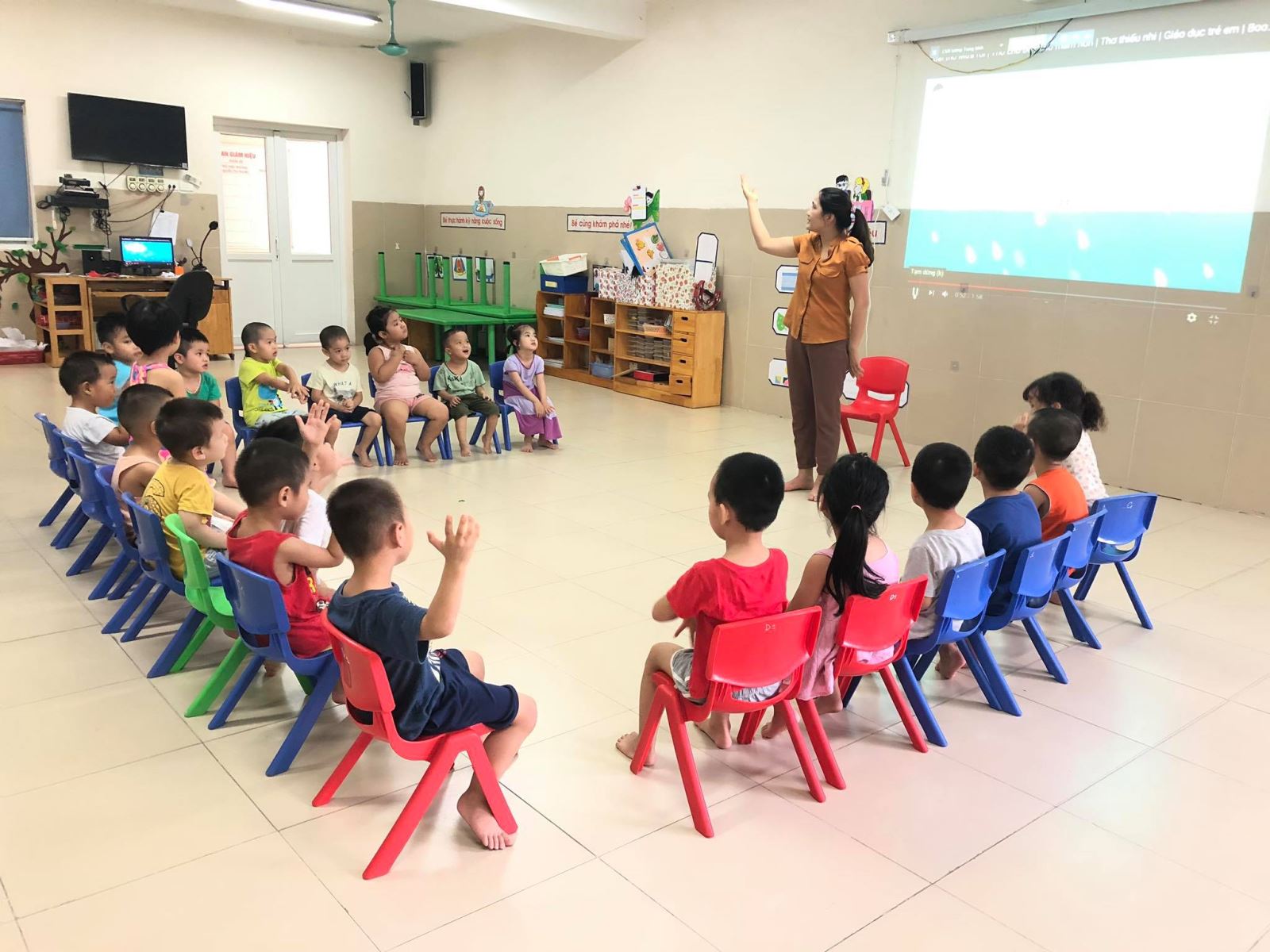 Ngay từ khi cò !important;n trong bụng mẹ, những đứa trẻ của chúng ta đã phản ứng nhanh nhạy với nhịp điệu, âm thanh qua bước đi, động tác và lời nói của mẹ. Có thể thấy, cảm nhận đầu tiên về ngôn ngữ của của con trẻ là thông qua vần điệu và lời nói của mẹ. Vì thế, cho trẻ mầm non làm quen với văn học từ sớm nên bắt đầu từ những vần thơ vì nó có vần, có điệu nên sẽ dễ dàng đi vào lòng trẻ hơn so với những câu văn dài. Đến với thơ ca, trẻ còn được hướng tới những tình cảm cao đẹp trong sáng, đằm thắm, thiết tha, trẻ còn có được tình yêu thiên nhiên, tình yêu con người và có những phẩm chất đạo đức tốt.