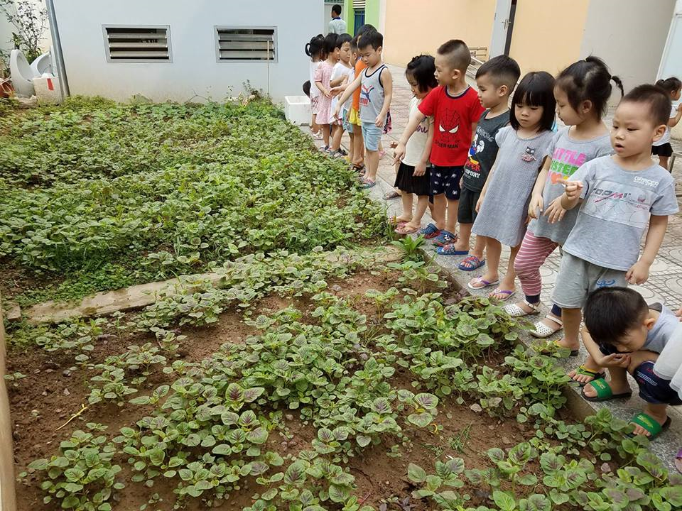 Vườn rau sạch còn giúp trẻ mầm non làm quen với thế giới thực vật sinh động qua các giờ học ngoài trời trực tiếp tham gia trồng, chăm sóc rau chứng kiến quá trình sinh trưởng phát triển của cây, hưởng thụ thành quả lao động của mình khiến vườn rau càng thêm ý nghĩa. Cùng ngắm những hình ảnh của cô và trò trong giờ học HĐNT khám phá vườn rau.