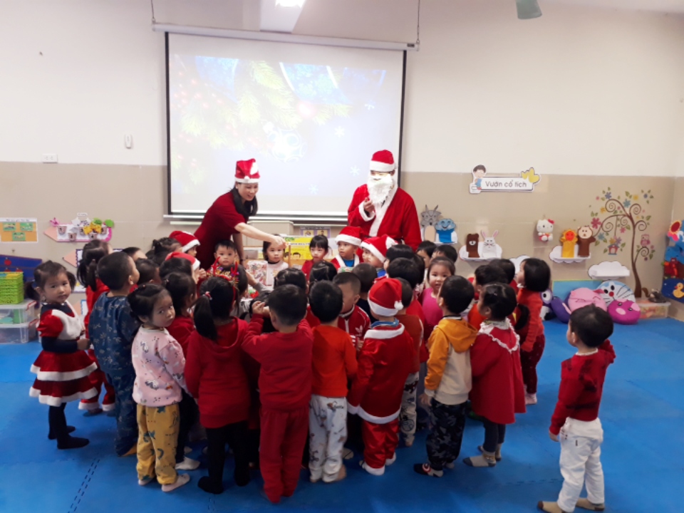 Hòa trung trong không khí giáng sinh, các bé ở trường mầm non Gia Thượng được vui liên hoan văn nghệ, được Ông già Noel tặng quà và tham gia tiệc Buffeet mừng sinh nhật các bé sinh tháng 7,8,9,10,11,12.