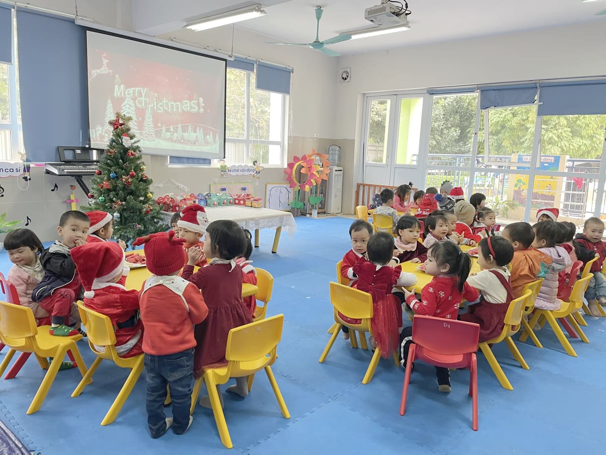 !important;Trong những năm gần đây, người Việt Nam dường như cũng đã xem mùa Giáng sinh là lễ hội của mình. Người ta sắm sửa cây thông Noel, trang trí nhà cửa; trẻ em háo hức đón chờ ông già Noel. Có những cháu gặp được ông già Noel, được ông trao quà tận tay; có những cháu không gặp được (vì ngủ quên), nhưng vẫn có quà, khi thì ở dưới gối, lúc ở trong bít tất, khi thì chuyển qua mẹ…Có quà là có cái để tin, để chờ cơ hội vào năm sau, có quyền hy vọng vào những điều kỳ diệu.Thật ra, nhận quà chưa phải là điều quan trọng nhất với trẻ em trong mùa Giáng sinh. Cái quan trọng nhất là chúng tin rằng, ông già Noel là có thật; ông ấy có một vương quốc riêng, ở đó đầy ắp những chuyện diệu kỳ: cỏ cây, hoa lá, tất cả sống vui vẻ, thân thiện với nhau, xem nhau là bạn bè… Với trẻ em, đây là một thế giới huyền ảo, tồn tại đâu đó bên cạnh thế giới thực của con người. Dưới đây, là 1 số hình ảnh các bé trường mầm non gia thượng chào đón ngày Noel.