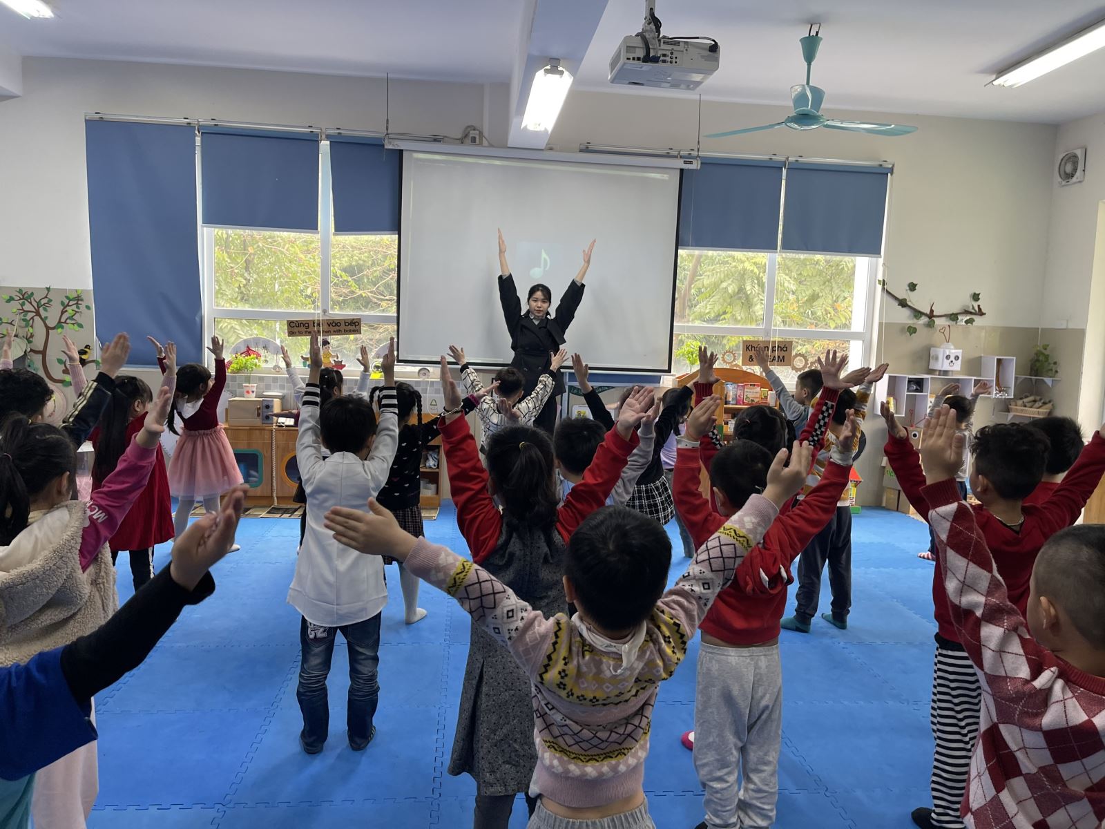 Cuối cùng, cô và trẻ cùng hồi tĩnh, làm chim bay nhẹ nhàng trong lớp