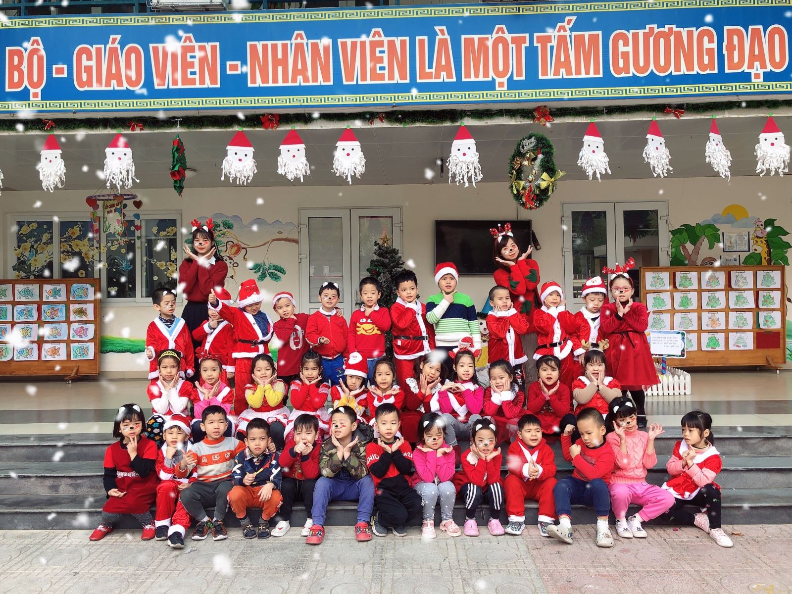 Ngày 24/12, các bé tham gia chương trình Merry Chirmast ở sân trường.
