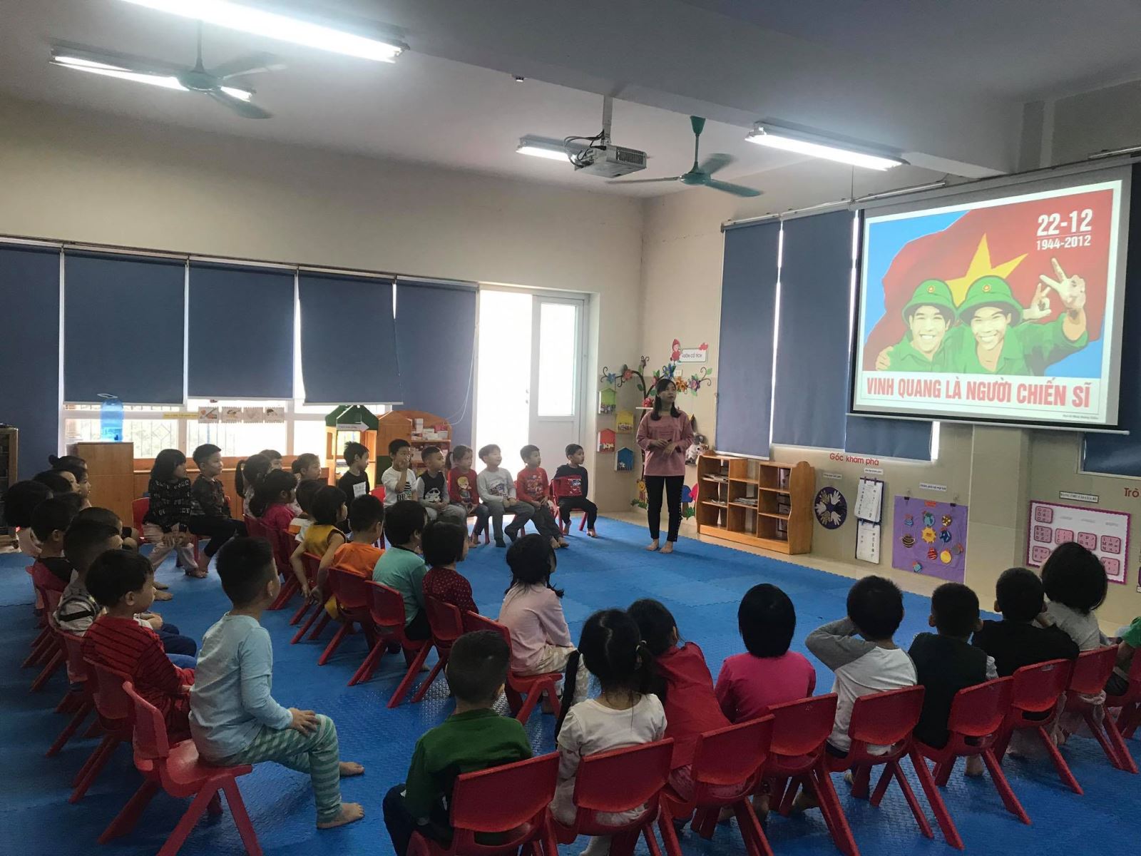 Hiểu được ý nghĩa sâu sắc đó, các cô giáo của lớp Mẫu giáo lớn A6 đã dành tâm huyết và xây dựng tiết học với đề tài “ Bé tìm hiểu về ngày quân đội Nhân dân Việt Nam 22/12” để cho các bạn nhỏ được học hỏi và trải nghiệm về ngành nghề cao quý này. Từ đó khơi dậy trong trẻ niềm tin yêu và tự hào về dân tộc.