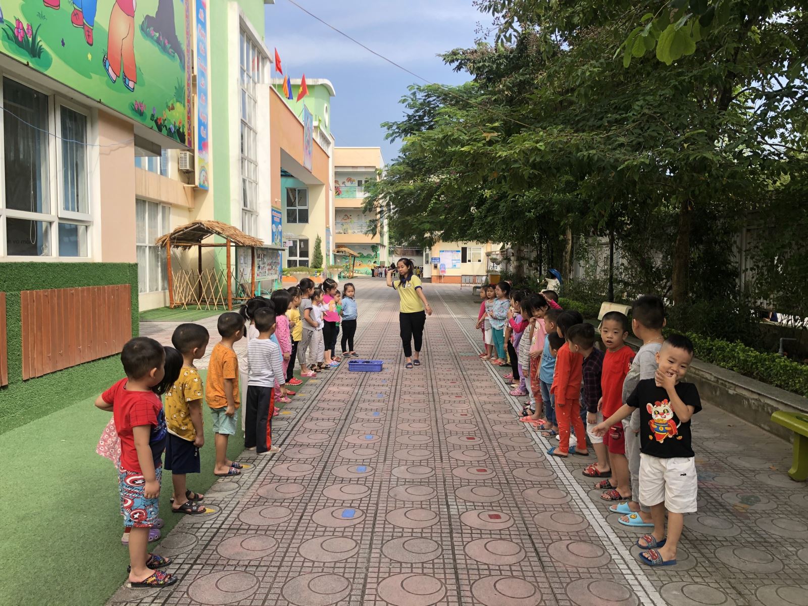 Mở đầu bài học, các bạn nhỏ đi vòng tròn các kiểu chân