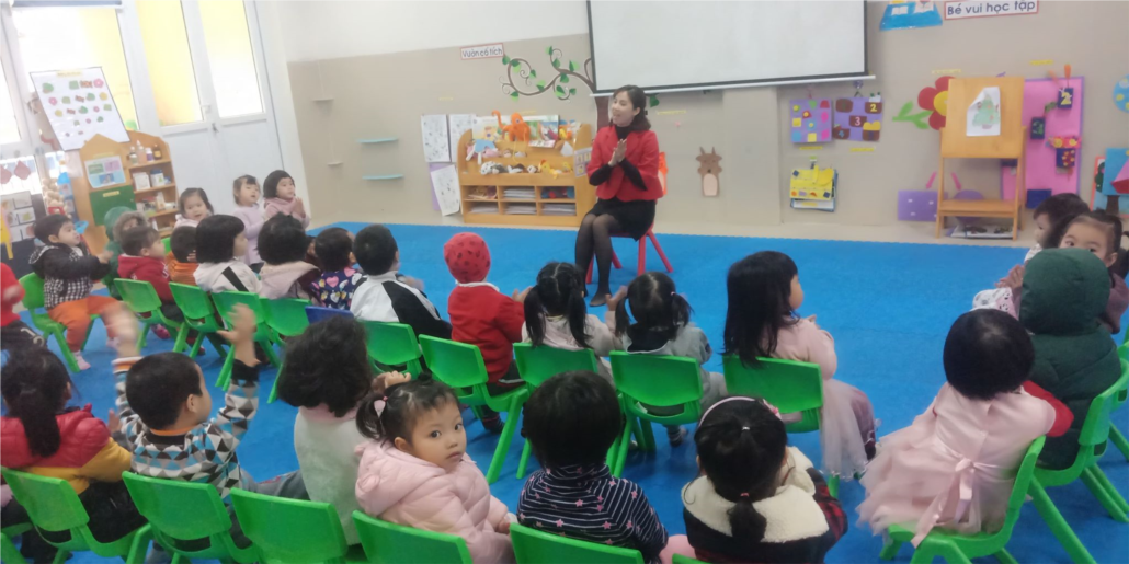 Cô đọc thơ cho trẻ nghe.