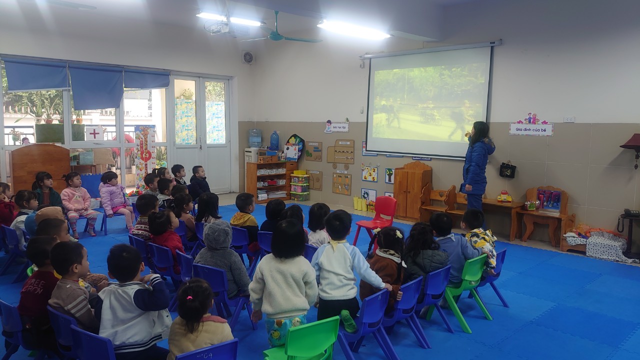 Cô cho trẻ xem video về chú bộ đội