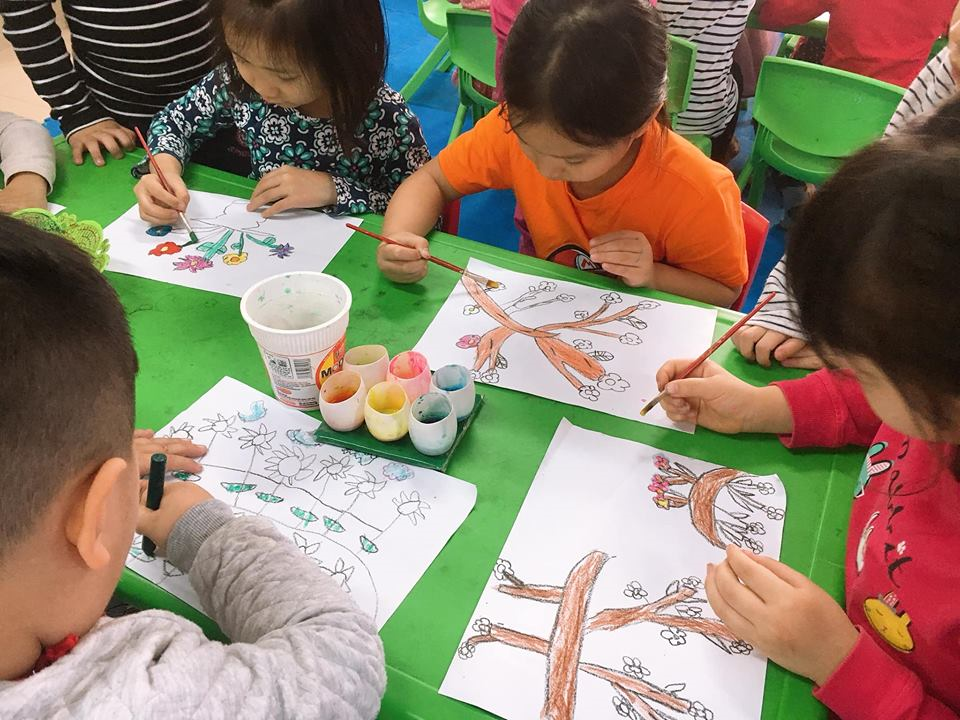 Sau đây là một số hình ảnh trong giờ hoạt động tạo hình "Vẽ hoa mùa xuân" của các bạn lớp MGL A1 trường mầm non Gia Thượng