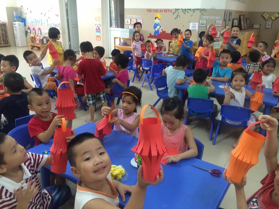 Hoạt động " Cắt dán đèn lồng" kết thúc trong sự vui sướng của các bé. Từ đó, các bé càng thêm háo hức chờ đón buổi liên hoan văn nghệ và không khí liên hoan phá cỗ đón Trung Thu tại trường và lớp của mình.